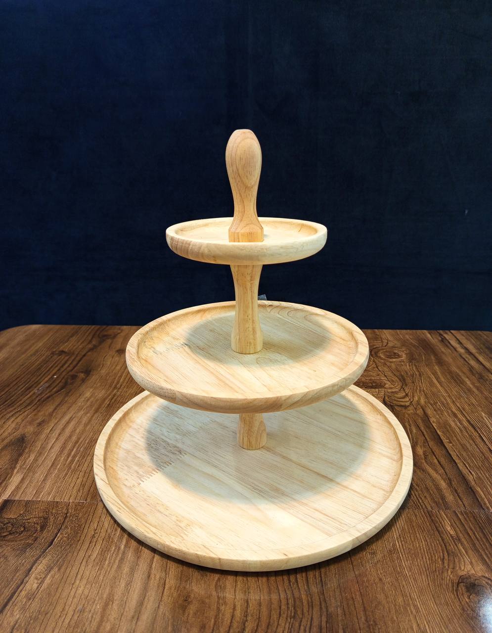 بشقاب گرد 3 طبقه با طراحی متعادل و پایههای مقاوم، جلوهای چشمنواز به میز پذیرایی میدهد. ساختهشده از چوب باکیفیت، با پرداخت دقیق و سطحی براق. بهدلیل طراحی طبقاتی، فضای بیشتری برای سرو فراهم میکند. از محصولات پرفروش بازرگانی خانپور که هم کاربردی است و هم زیبا.