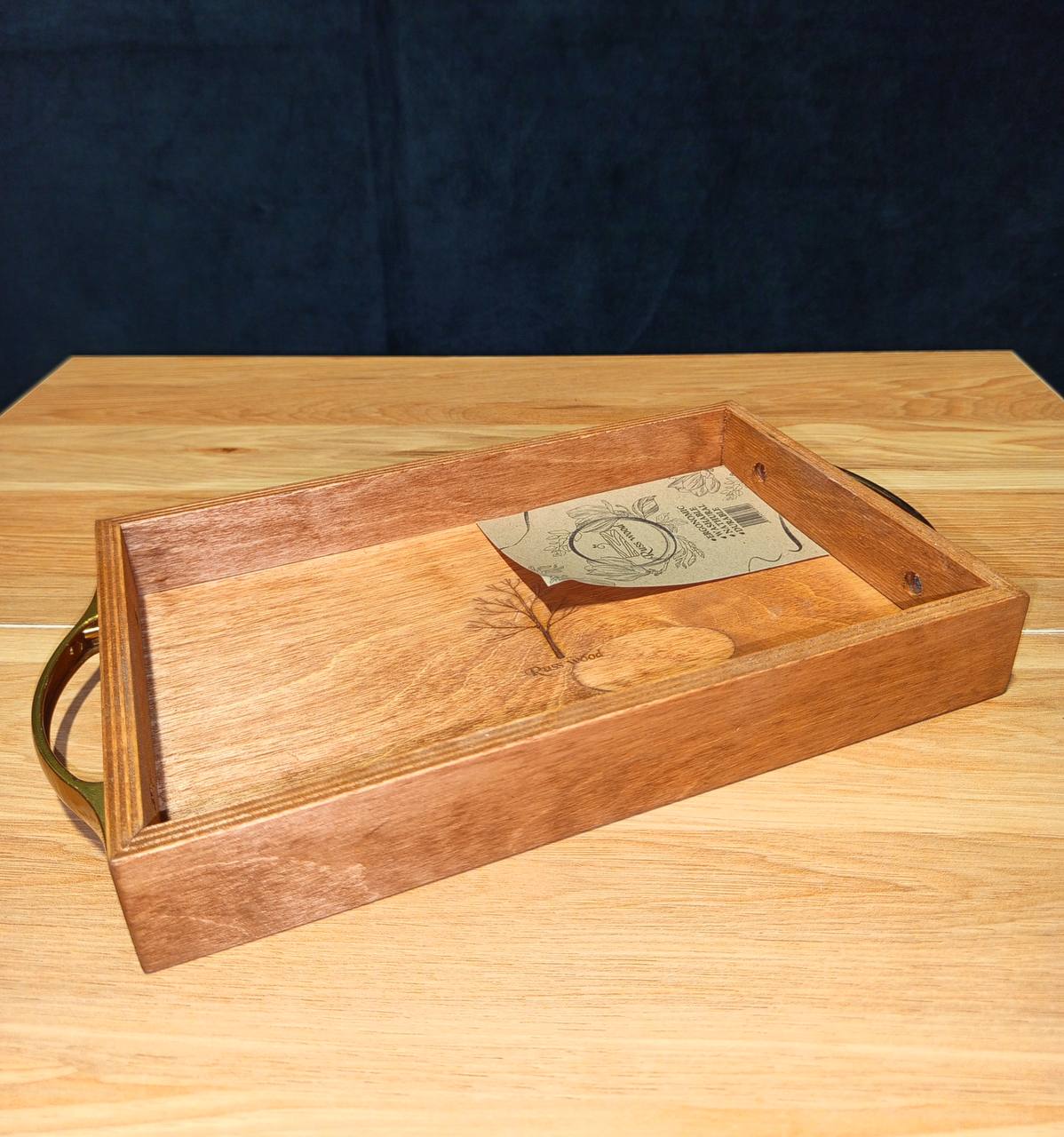 سینی درختی مستطیل کوچک دسته طلایی با طراحی خاص و ترکیب چوب طبیعی و فلز طلایی، جلوهای مدرن و لوکس دارد. دستههای طلایی علاوه بر زیبایی، حمل آن را راحتتر کردهاند. این سینی برای پذیرایی در مهمانیها یا استفاده روزمره کاربرد دارد و جلوهای خاص به میز پذیرایی شما میبخشد. کیفیت بالای چوب و طراحی مدرن، محصول را ماندگار و کاربردی کرده است.